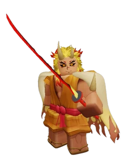 Flame Breather (Demonic) is a Ultimate unit based on Demon Kyōjurō Rengoku from Demon Slayer. He can be obtained via evolving Flame Breather.